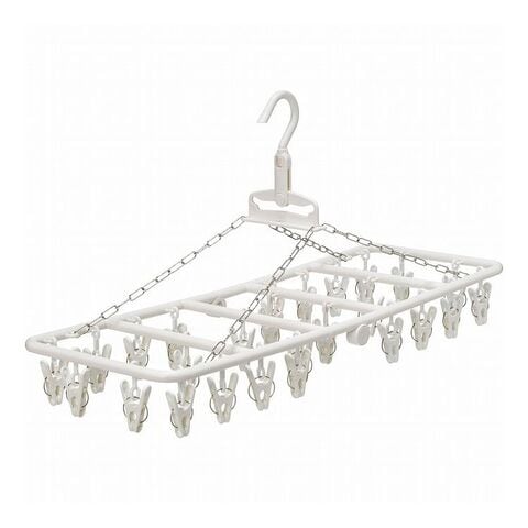 オフホワイトのボディが、部屋干しをしていても目立たない。吊りひもから洗濯ばさみのリングが外せるので、破損したり紛失した洗濯ばさみは市販のものと取り替えられる。ランジェリー用などお好みのピンチに交換することも。
