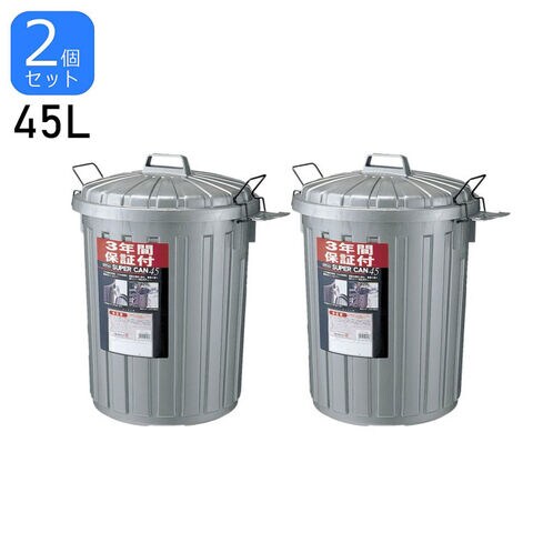 2個セット ゴミ箱 ポリバケツ スーパーカン(L) ガンメタリック L-112C GM 屋外 ダストボックス おしゃれ シンプル モダン 45L【送料無料】
