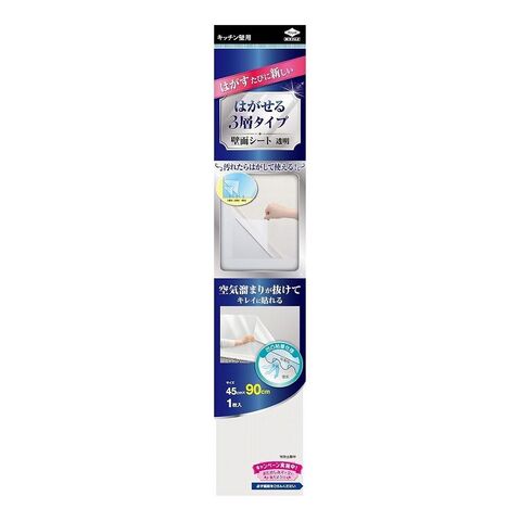 コンロ周りの壁に貼って油汚れを防ぐ、3層タイプの壁面シート。毎日の調理の油はねによって日々汚れる、落ちにくい汚れに。空気が抜けてきれいに貼れる、凸凹粘着加工。透明なシートが3層構造になっているので「汚れたらはがす」ができて、きれいを保てます。カットする際の目安になるよう離型フィルムには格子柄が印刷されています。