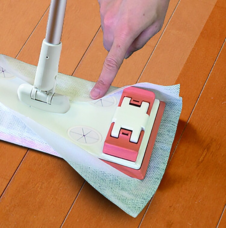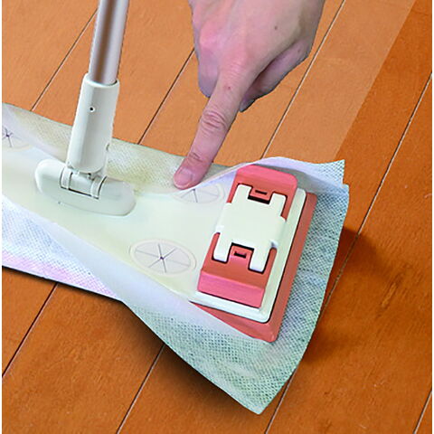 お掃除シートも取付OKお掃除シートを取り付ける差し込み型クリップでしっかり固定。ぞうきんもシートも2WAYで使えます。狭い隙間もしっかりお掃除ワイパーの方向を立てに向ければ家具の隙間や手の入りにくい箇所もしっかりお掃除。