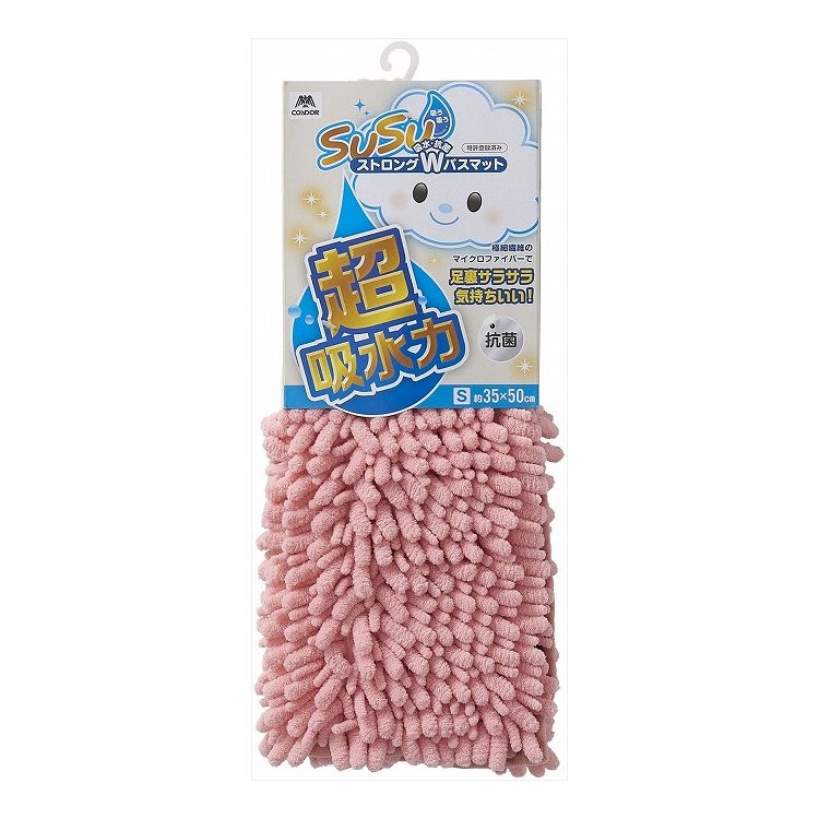 山崎産業 SUSU 抗菌ストロングWバスマット EC (S 35×50cm) ピンク 足拭き タオル 足ふき マイクロファイバー お風呂マット【送料無料】