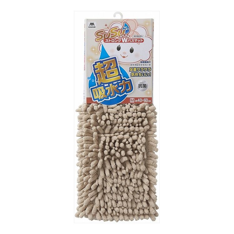 山崎産業 SUSU 抗菌ストロングWバスマット EC (M 40×60cm) ベージュ 足拭き タオル 足ふき マイクロファイバー お風呂マット【送料無料】