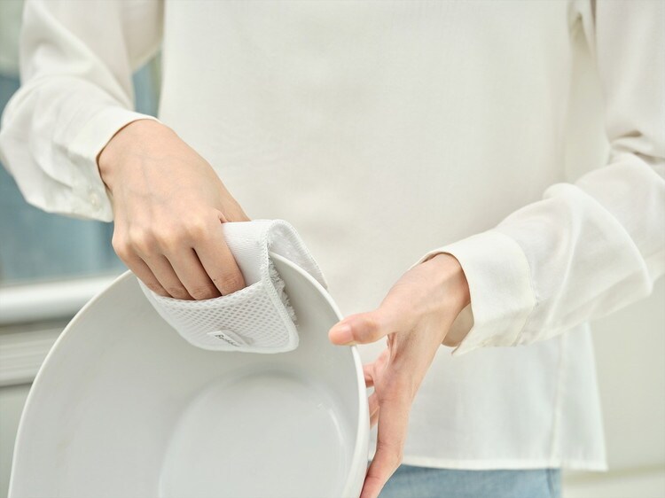 独自の編み目構造繊維により、ヌメリなどの汚れを、水だけでかかき取る。泡立ち・泡持ちも◎。抗菌加工済み。
