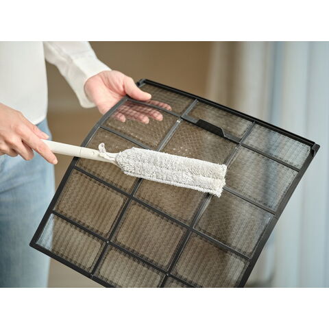 モップは柔らかいマイクロファイバーモップ。エアコンフィルターも優しくお掃除できます。乾拭きでも水拭きでも、どちらでも使用できます。水拭きの場合はモップを水で濡らし、固く絞ってください。モップは洗って繰り返し使うことができて経済的。