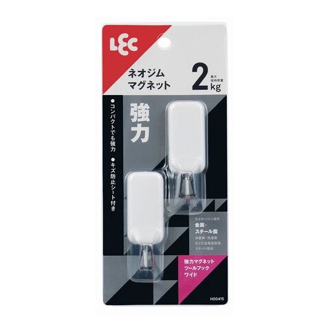 マグネットで冷蔵庫などの金属面に取り付けるフック2個入。