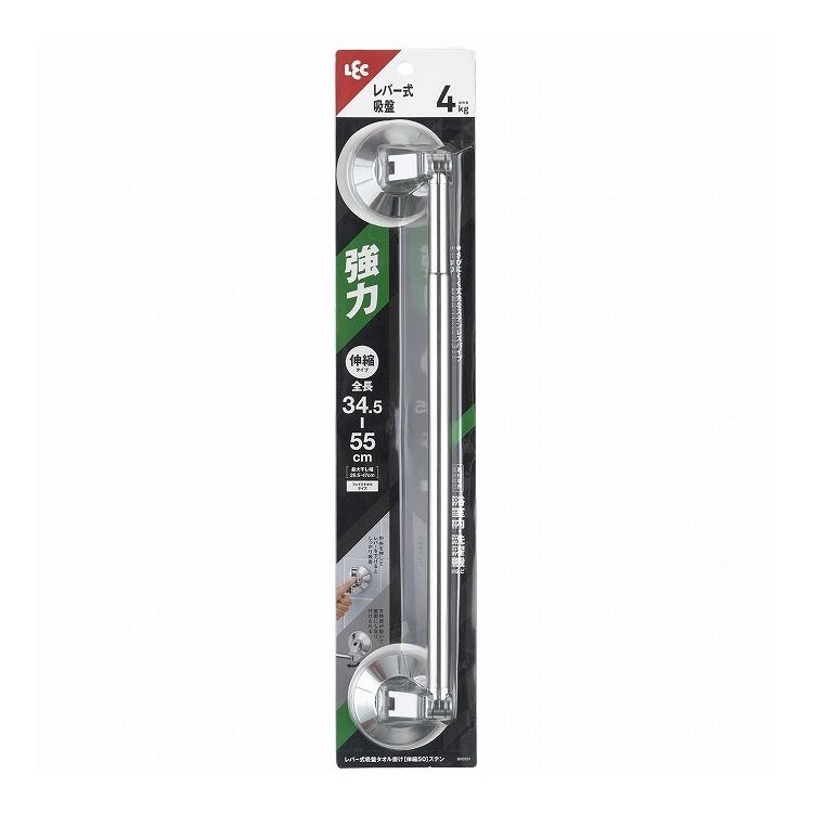 レック レバー式 吸盤 タオル掛け 伸縮(50)ステン B00551 タオルハンガー 浴室【送料無料】