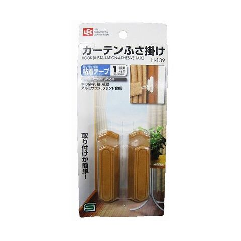 粘着テープ式のカーテンふさ掛け2個入り。