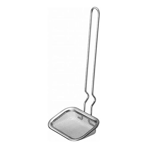 角型揚げ鍋の角まですくえる、コンパクトなカス揚げ。四角い網が角型の揚げ鍋にフィット。奥側にかすを溜められるポケット構造。