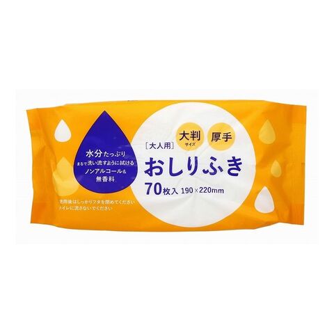 【5個セット】 大和物産 大人用 おしりふき 大判 (70枚入) おしり からだ拭き 清拭 ノンアルコール 無香料【送料無料】