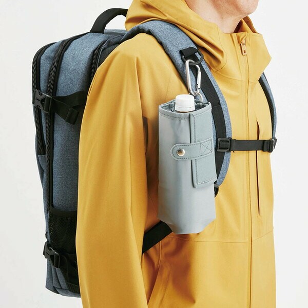 材質:ボトルホルダー部/(表生地)ポリエステル、(裏生地)アルミフラップ部/ポリ塩化ビニル発泡+ポリエステル収納口/ポリエステル・ポリウレタン背面ベルト/ポリエステル