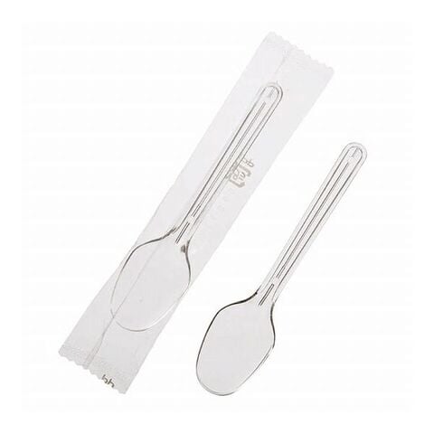 個包装の使い捨てミニスプーン。手軽に使えるプラスチック製。