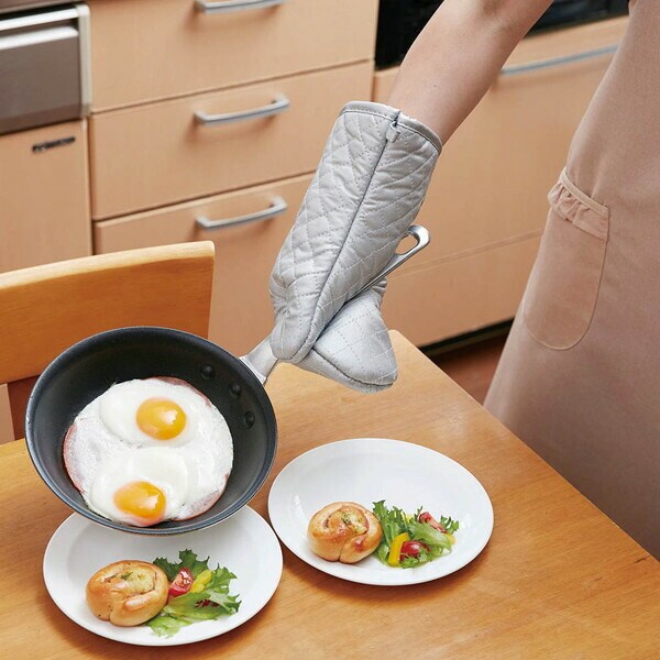 耐火繊維ではございませんので火に近づけたり、火のそばに置いたりしないでください。また、ミトンが焦げるほど高温に熱せられた調理器具や食器類、その他のご使用はおやめください。