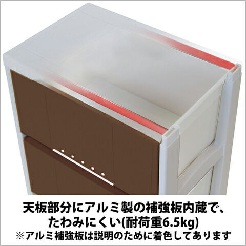 材質:天板、外枠、引出、コロ、脚/ポリプロピレン 前パネル、前枠/スチロール樹脂 補強板/アルミ