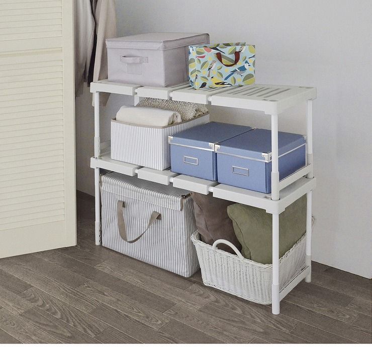 縦にも横にも伸びて、収納スペースにぴったり合う整理棚、レギュラータイプ2台入。