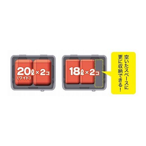 一般的な18Lの灯油ポリタンクが2個、ビールケース(大)が1個収納できます。