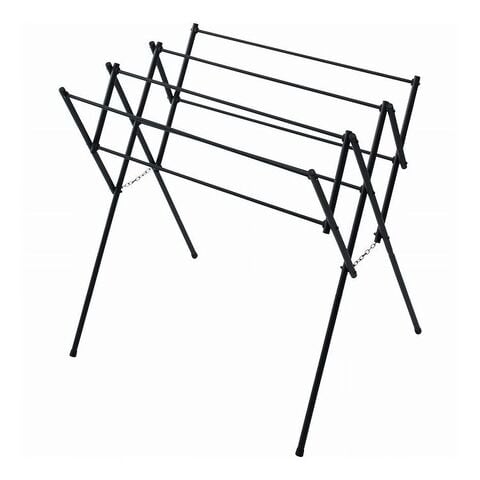 バスタオル4枚、フェイスタオル3枚が干せる。パッと開いてすぐ使える簡単折り畳み式。
