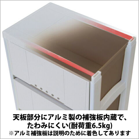 材質:天板、外枠、引出、コロ、脚/ポリプロピレン 前パネル、前枠/スチロール樹脂 補強板/アルミ