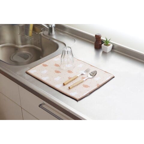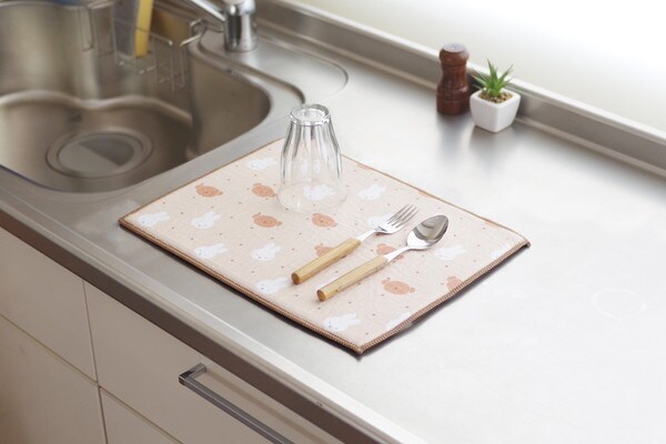 シンプルなデザインだから、合わせやすい。同じシリーズのフキンもあるので、一緒に揃えるとますますオシャレなキッチンに。マットが濡れたまま、長時間放置しないでください。カビの発生や、接地面の変色する原因となります。生地の性質上、光により多少変色することがあります。
