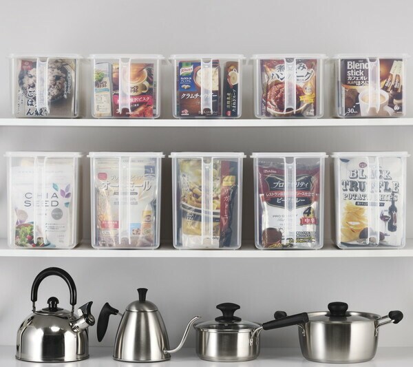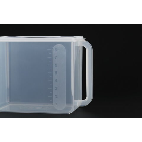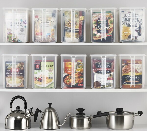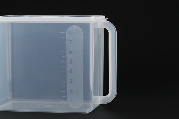 ピッタリ閉まる柔らかなフタがついているので、虫やほこりの浸入を防ぎます(※完全密封ではありません)。容器は半透明だから、フタを外さなくても、パッと見ただけで中身の確認が簡単。最大容量9.5L、目盛容量8Lでたっぷり入る。メモリもついているので、ペットフードを入れたり、水筒・お弁当のパーツやベビー用品の消毒など、いろいろな使い方ができます。