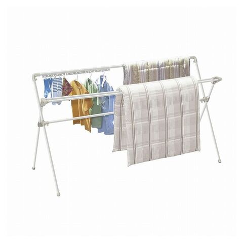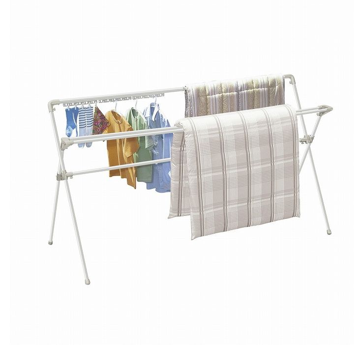 ハンガー掛け付き。ダブルバーで隙間を空けて干せるので乾きが早い。