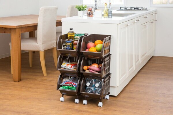 本体の横にはスリットが入っているのでキッチンで、野菜のストックに便利。食品ストックやお菓子のストック、乾物などのストックにも便利。