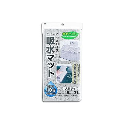 吸水力にすぐれたセルローズを使用した、大判サイズのキッチン吸水マット。自重の約10倍の吸水力! 食器の水切りや、シンク周りの拭き取りに。約48×31cmの大判サイズ。 ハサミなどで自由なサイズにカットして使えます。