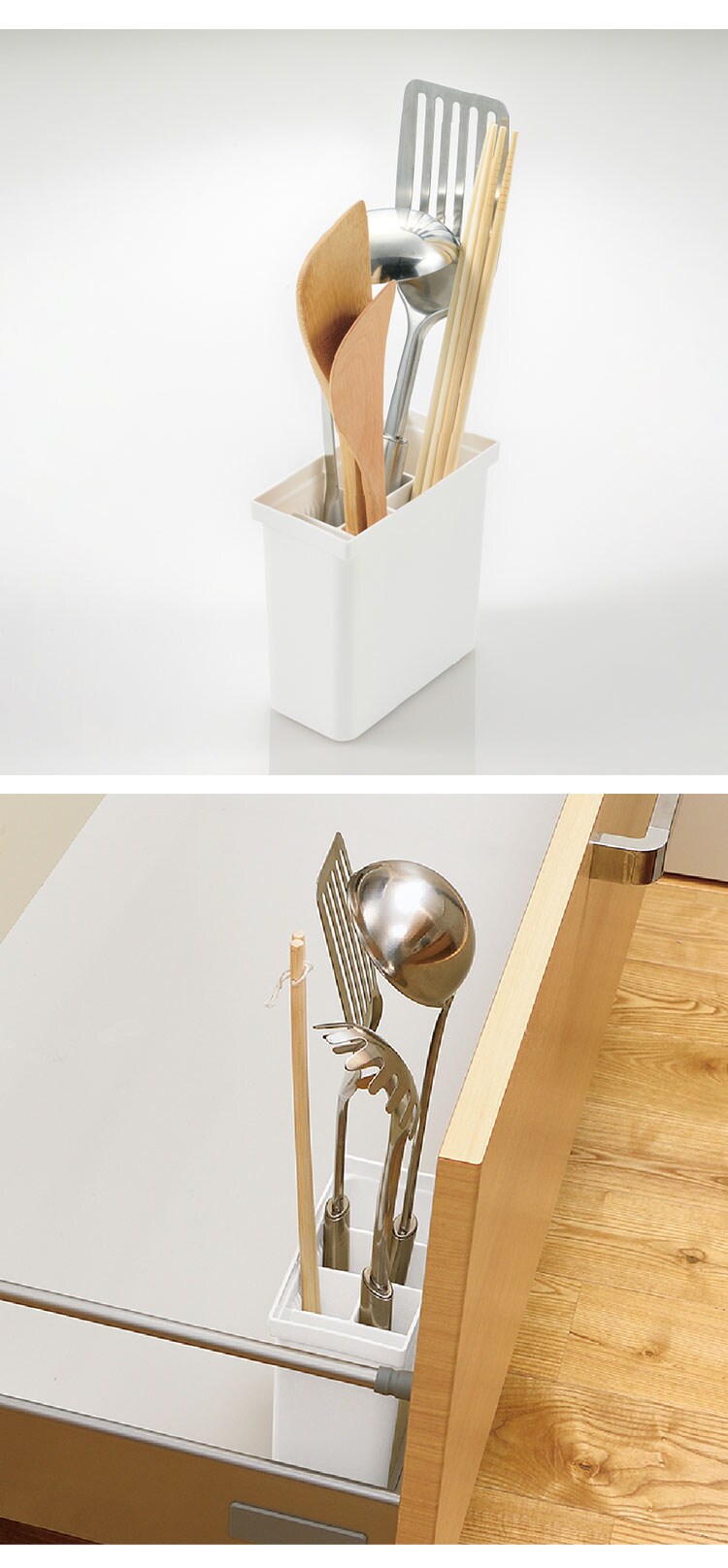 キッチンツールを取り出しやすい位置に立てて収納できます。