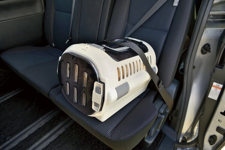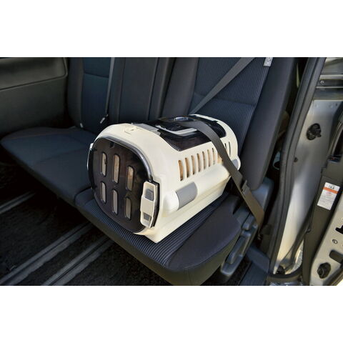 ドアは取り外せて向きを変えられるので、場所に合わせて『ドア無し』『右開き』『左開き』のどれでもお好きなようにご使用になれます。ハンドルの付け根部分に「引っ掛け部(シートベルトを通せるスリット)」があるので、簡単に車の座席にキャリーを固定することができます。