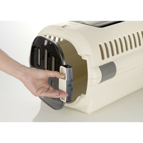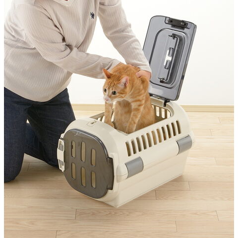 天面のトップドアからペットをラクに出し入れできます。別売りの「ウォーターノズル キャリー用」が取り付けられるので、キャリーの中でも給水が可能。幅が広めのワイドなハンドルは両手でも持てるので、女性でも安定して持ち運びができます。