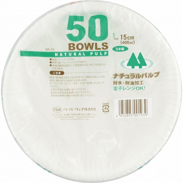 【3個セット】 ペーパーウェア PW ナチュラルパルプ ペーパーボウル 15cm 400ml 50個入 NB-15【送料無料】