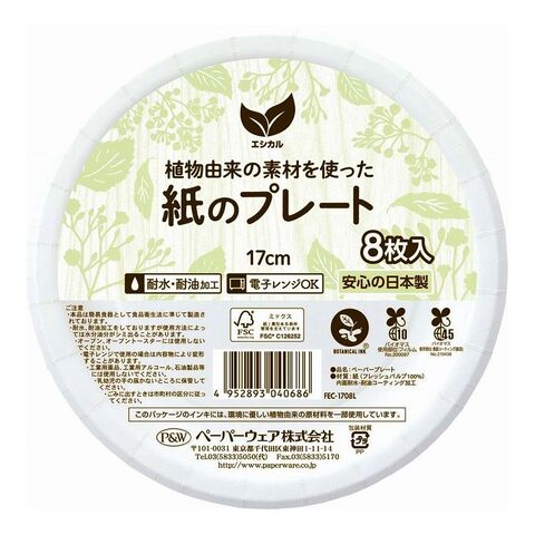 【5個セット】 エシカル ペーパープレート ホワイト 植物由来の素材を使用【送料無料】