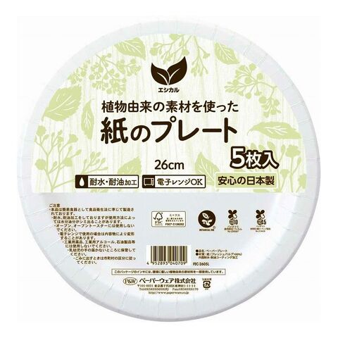 【5個セット】 エシカル ペーパープレート ホワイト 植物由来の素材を使用【送料無料】