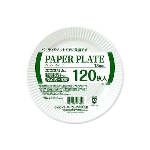 【2個セット】 ペーパーウェア エコスリム ペーパープレート 18cm 120枚入 E-18120 使い捨て 食器 耐水 容器 耐油 皿 電子レンジOK 日本製【送料無料】
