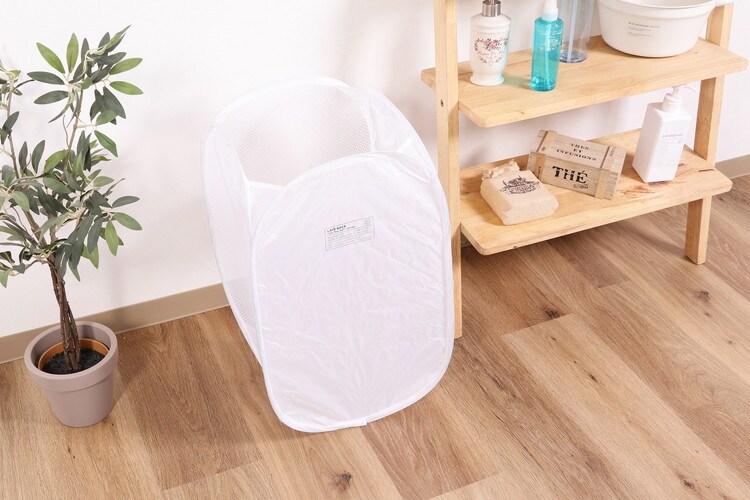 においや湿気が溜まりにくいので、濡れたものも入れることができる。ランドリー収納としてはもちろん、おもちゃの収納や衣類の一時置きとしても。ゴミ袋をセットすれば簡易ゴミ箱としても使用できる。