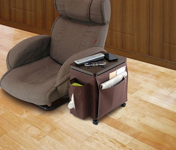 リモコンや小物などサイドテーブルワゴンにまとめればスッキリ片付く。