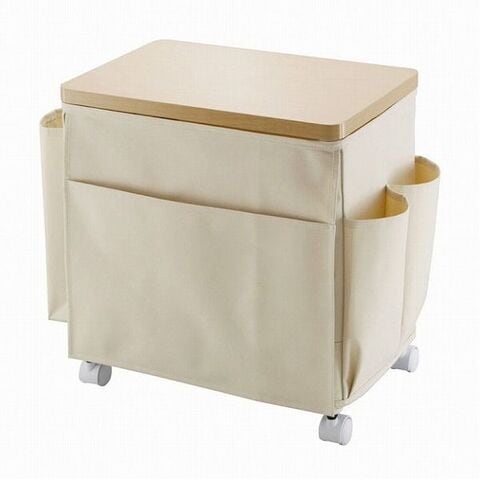 リモコンや小物などサイドテーブルワゴンにまとめればスッキリ片付く。