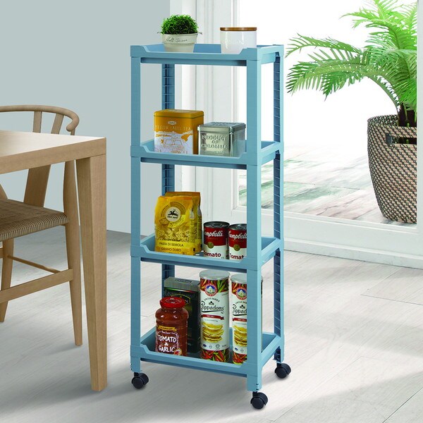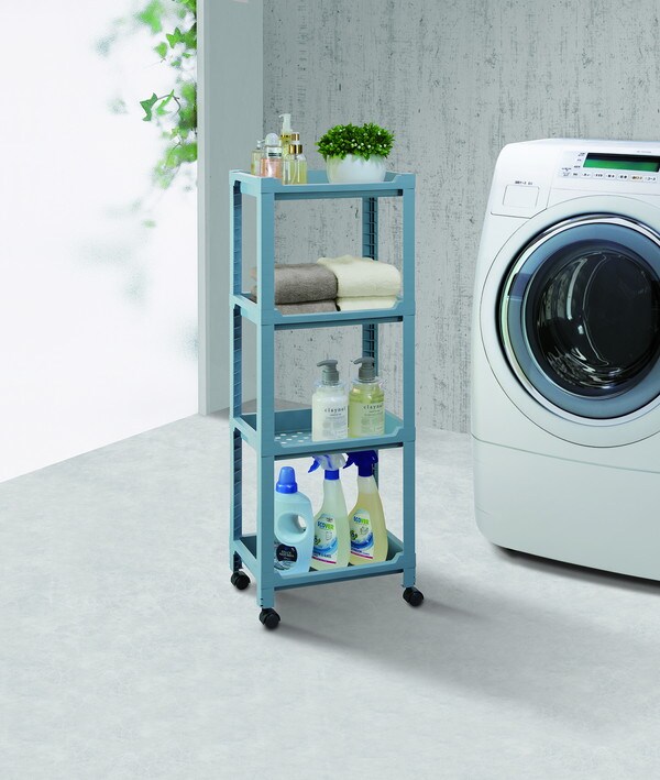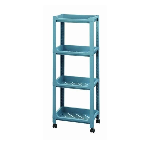 不動技研 コネクトラック ミニ ブルー F64201 収納ワゴン キャスター付 天板付き 組立式 工具不要 4段【送料無料】