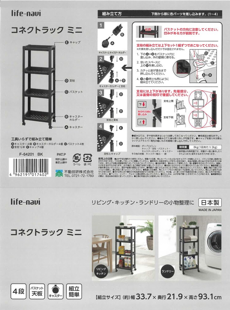 材質:キャップ・支柱・バスケット・キャスターホルダー・キャスター/ポリプロピレン キャスター軸心/鉄