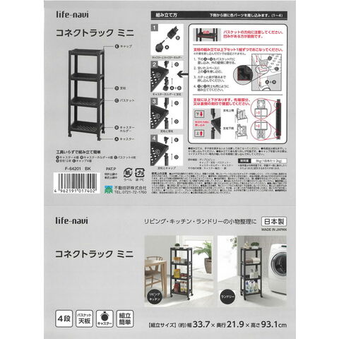 コネクトラック ブラック 収納ワゴン キャスター付F64201【送料無料】