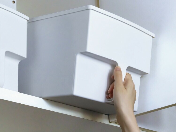 後部には傾斜がついており取り出し時に上の棚にぶつからずに取り出せるアイデア設計