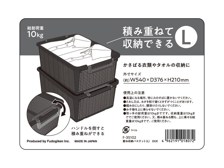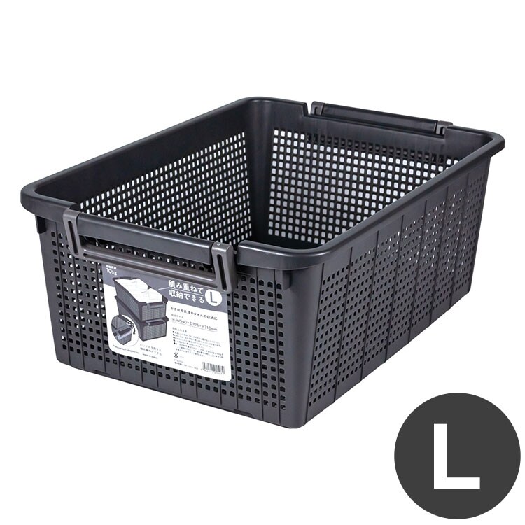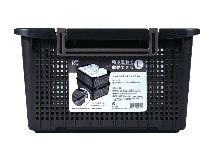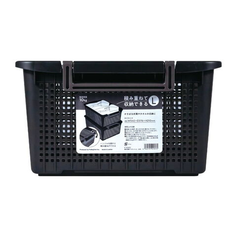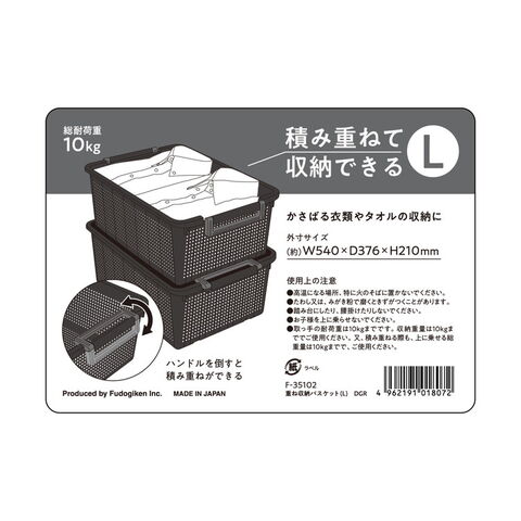 不動技研 重ね収納バスケット L 深型 ダークグレー F-35102 かご 積み重ね ボックス 深型 大容量 プラスチック【送料無料】