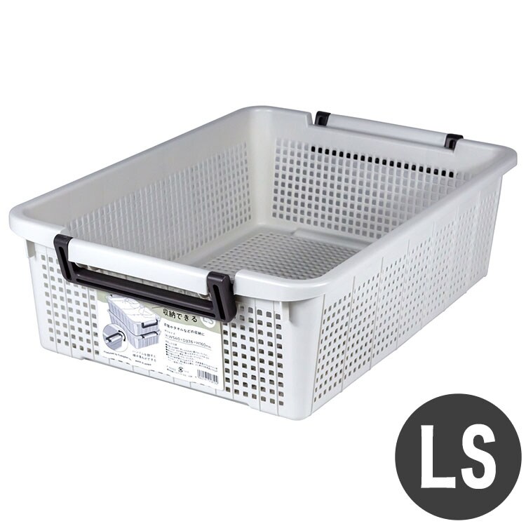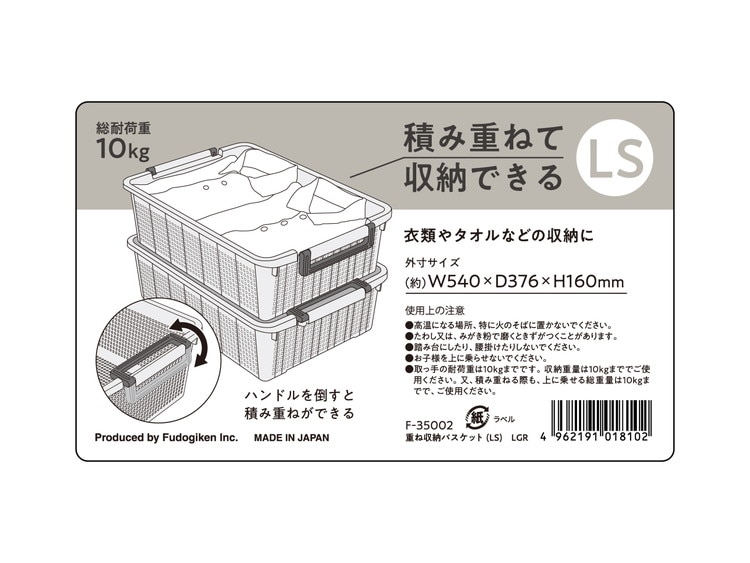 不動技研 重ね収納バスケット LS 浅型 ライトグレー F-35002 かご 積み重ね ボックス 深型 大容量 プラスチック【送料無料】