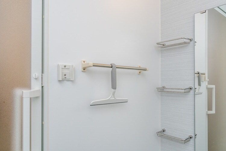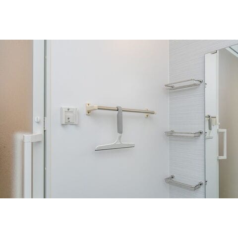 グリップの先端はフック形状になっているので、タオルバーに掛けて収納ができます。