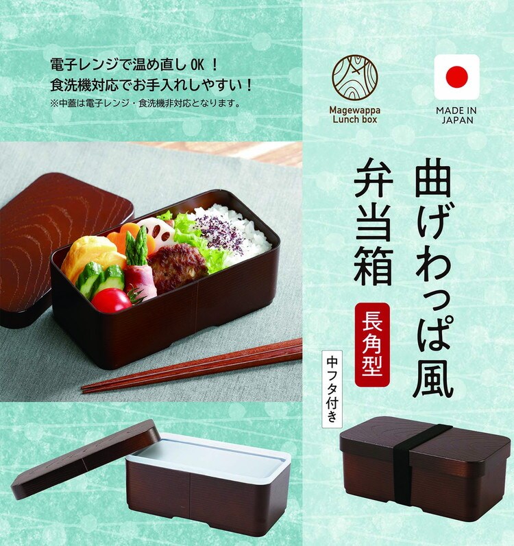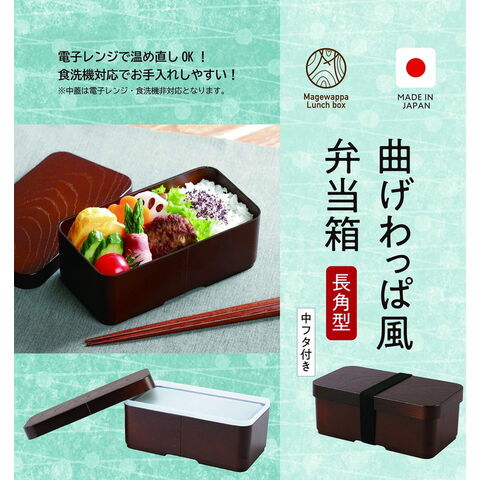 カクセー 曲げわっぱ風 弁当箱 茶 TW-08 長角型 日本製 まげわっぱ お弁当箱 食洗機対応 電子レンジ対応【送料無料】