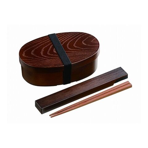 カクセー 曲げわっぱ風 弁当箱 箸と箸ケースのセット(袋入) 茶 TW-13 小判型 日本製 お弁当箱 箸 セット まげわっぱ 箸付き 食洗機対応【送料無料】