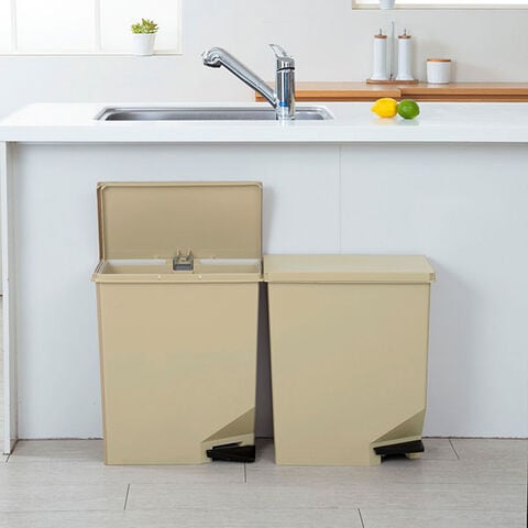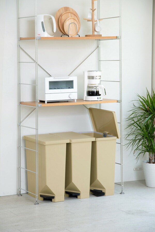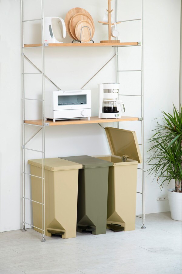 新輝合成 棚下・カウンター下にも置けるペダルペール35 35L カーキベージュ【送料無料】
