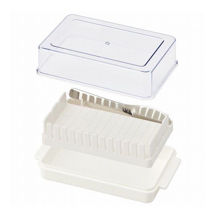 材質:フタ/AS樹脂 本体・トレー/ポリプロピレン バターナイフ/18-8ステンレス