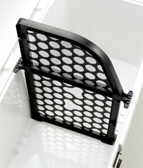 片手で簡単にあけられます。雨が入りにくく、風の強い日にも倒れにくく安心。2分別できる仕切り付。仕切り位置は調整可能。