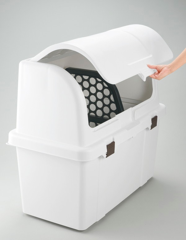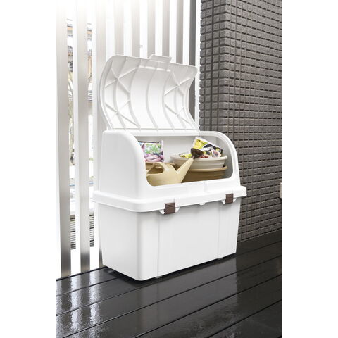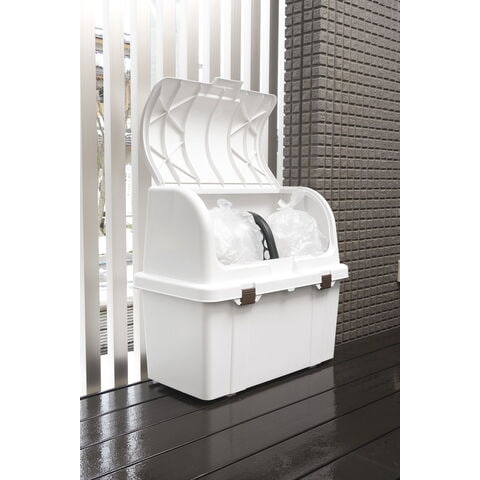 大容量タイプの分別ごみ箱。ゴミ容器以外にも、園芸用品や工具などの屋外収納庫としてもご使用いただけます。