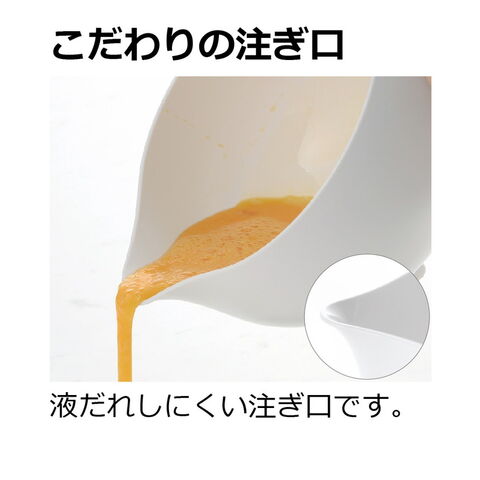 お鍋を使わず片付けラクラク。液だれしにくい注ぎ口。深くて中身がこぼれにくく混ぜやすい形。